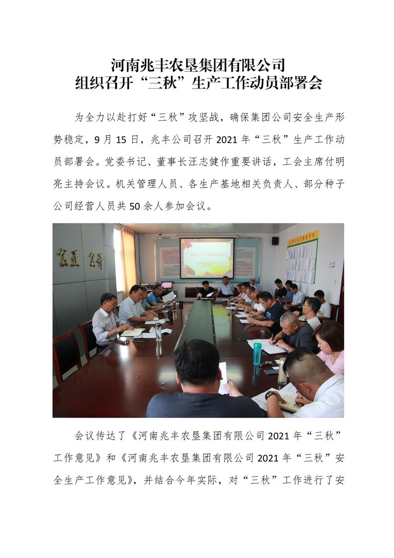 · 河南兆豐農墾集團有限公司 組織召開“三秋”生產工作動員部署會