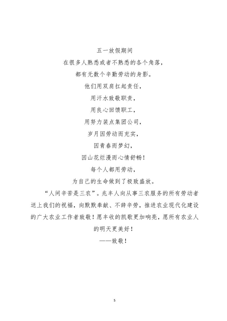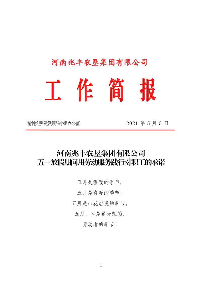 · 河南兆豐農(nóng)墾集團(tuán)有限公司 五一放假期間用勞動(dòng)服務(wù)踐行對職工的承諾