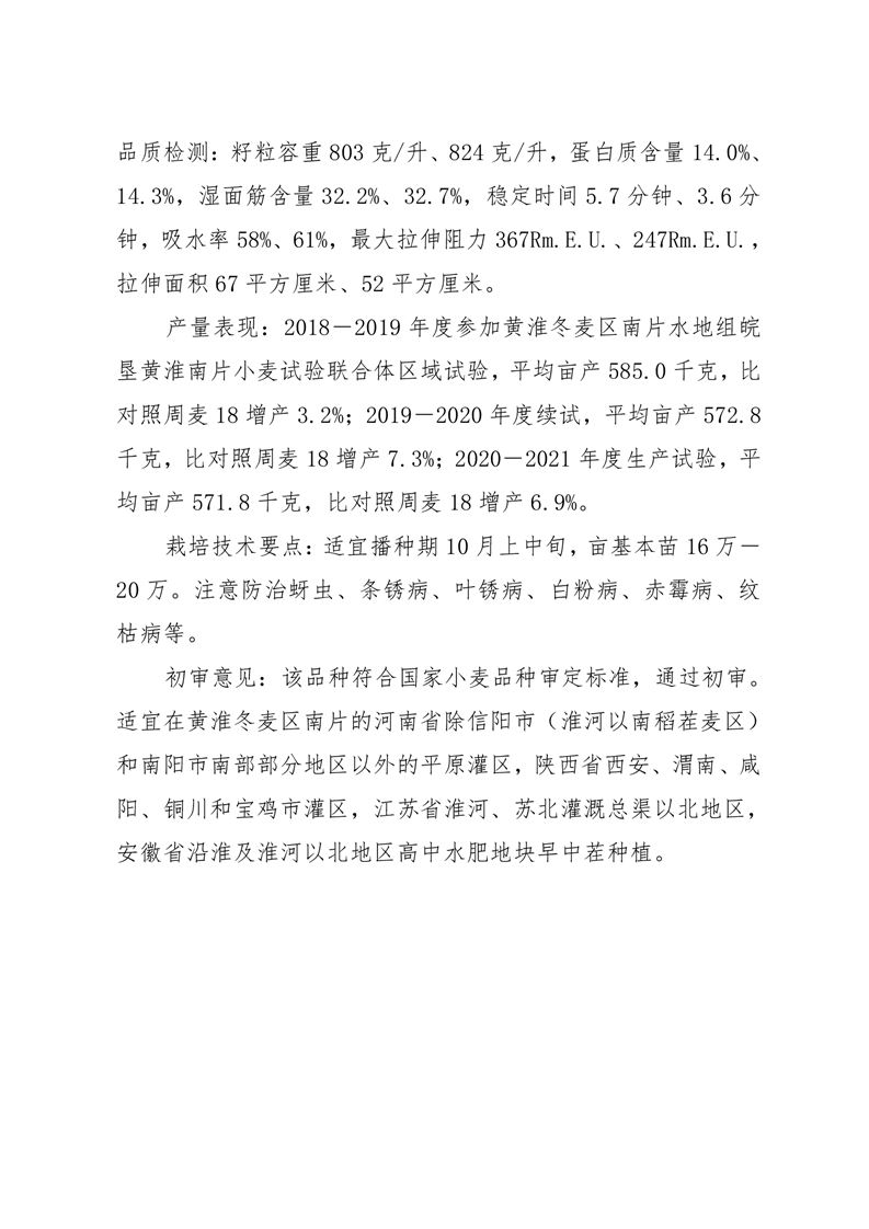 · 祝賀河南兆豐農墾集團有限公司 小麥品種兆豐3188、兆豐6號通過第四屆國家農作物品種審定委員會第五次小麥品種審定會議初審