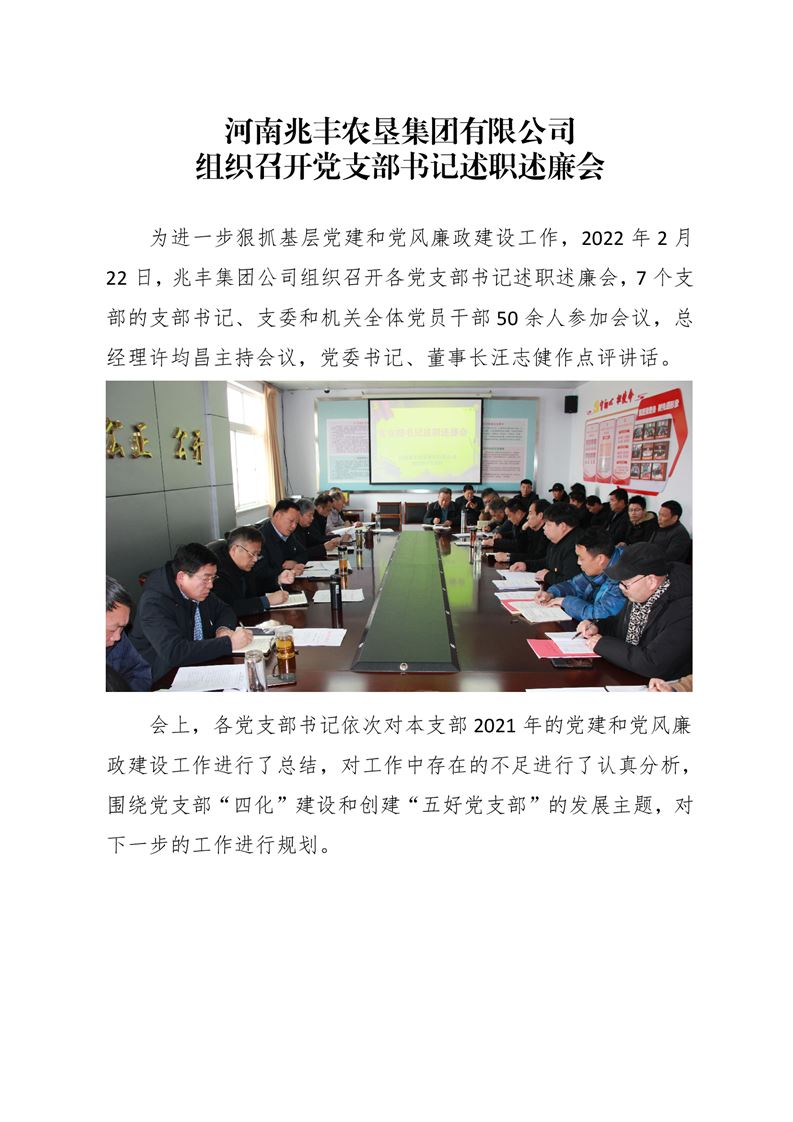· 河南兆豐農墾集團有限公司 組織召開黨支部書記述職述廉會