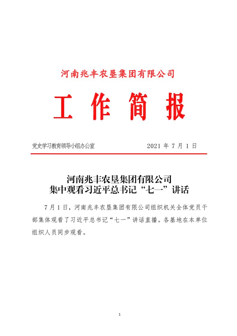 · 河南兆豐農墾集團有限公司 集中觀看習近平總書記“七一”講話