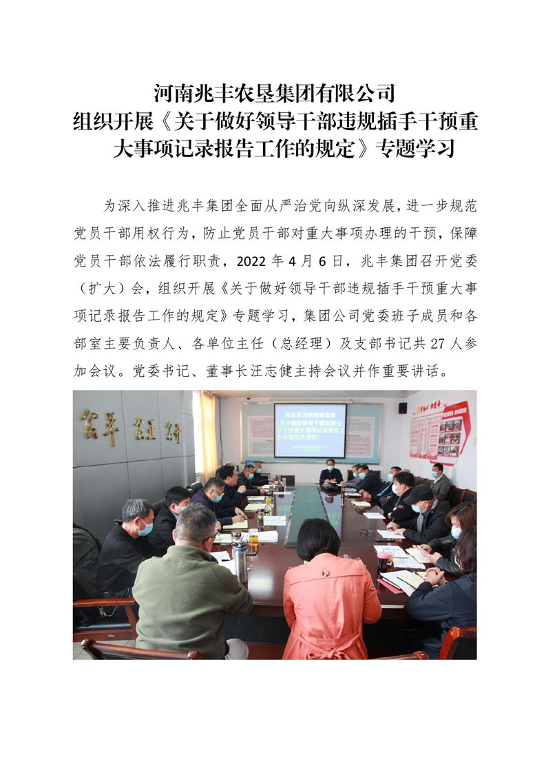 · 河南兆豐農墾集團有限公司 組織開展《關于做好領導干部違規插手干預重大事項記錄報告工作的規定》專題學習
