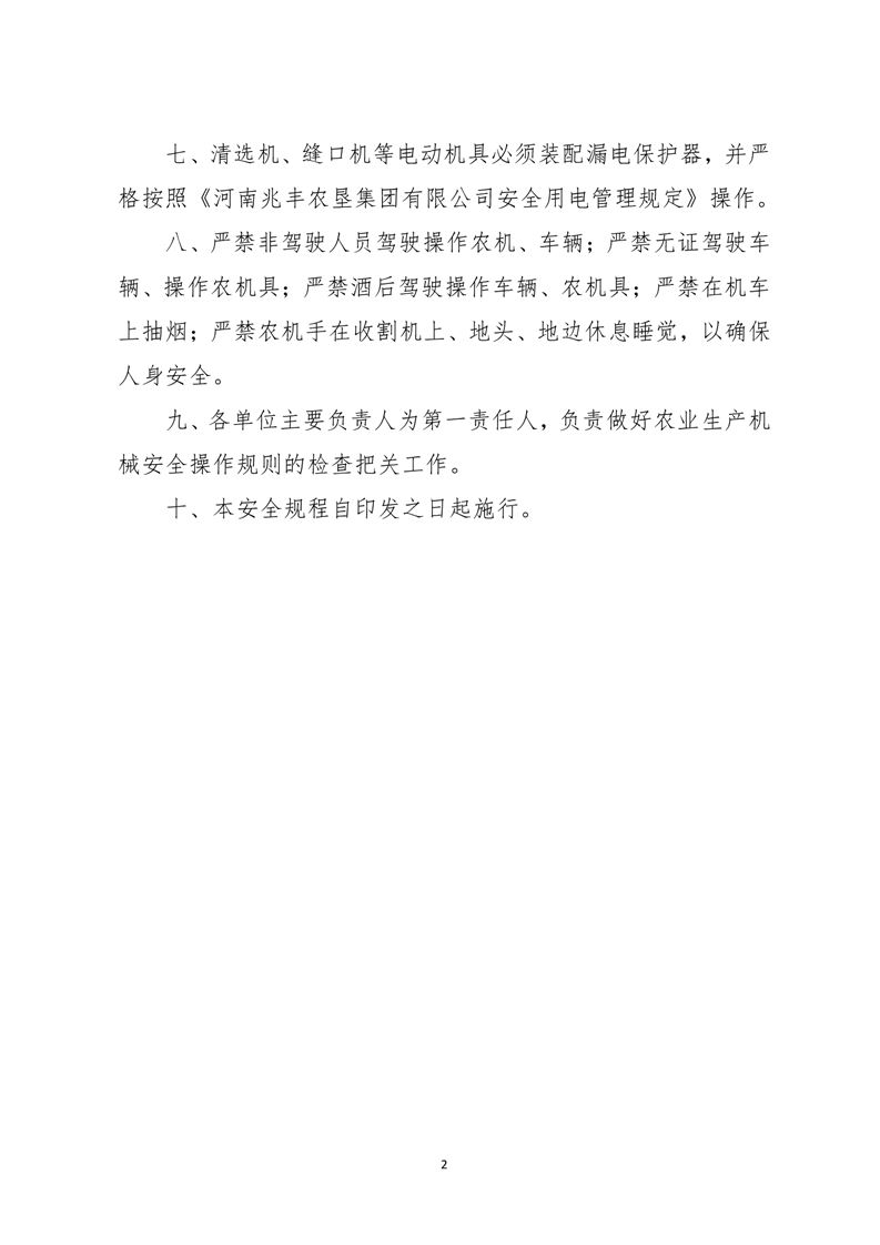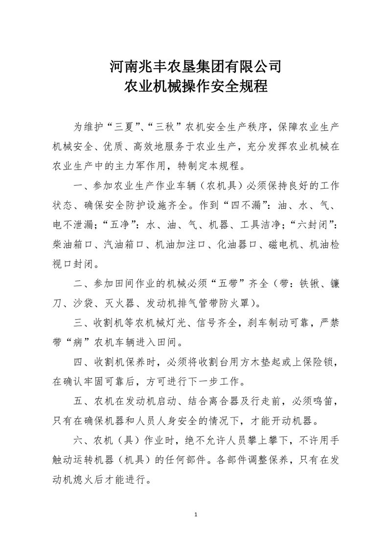 河南兆豐農墾集團有限公司 農業機械操作安全規程