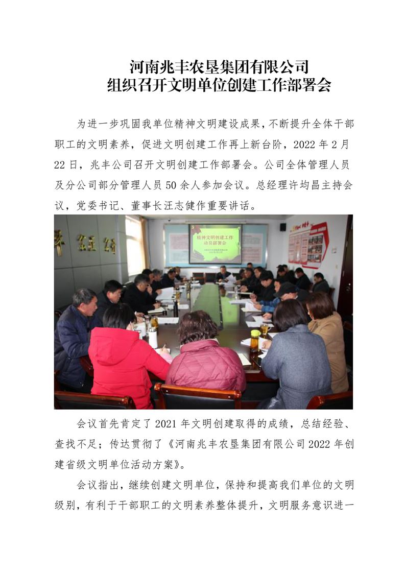 · 河南兆豐農(nóng)墾集團有限公司 組織召開文明單位創(chuàng)建工作部署會