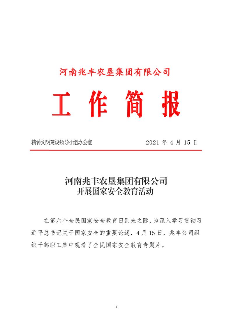 · 河南兆豐農(nóng)墾集團有限公司 開展國家安全教育活動