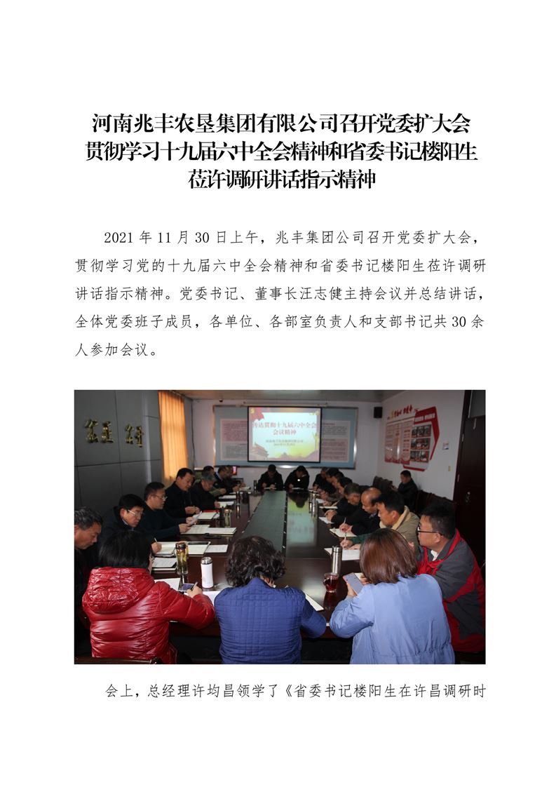 · 河南兆豐農墾集團有限公司 召開黨委擴大會 貫徹學習十九屆六中全會精神和省委書記樓陽生 蒞許調研講話指示精神