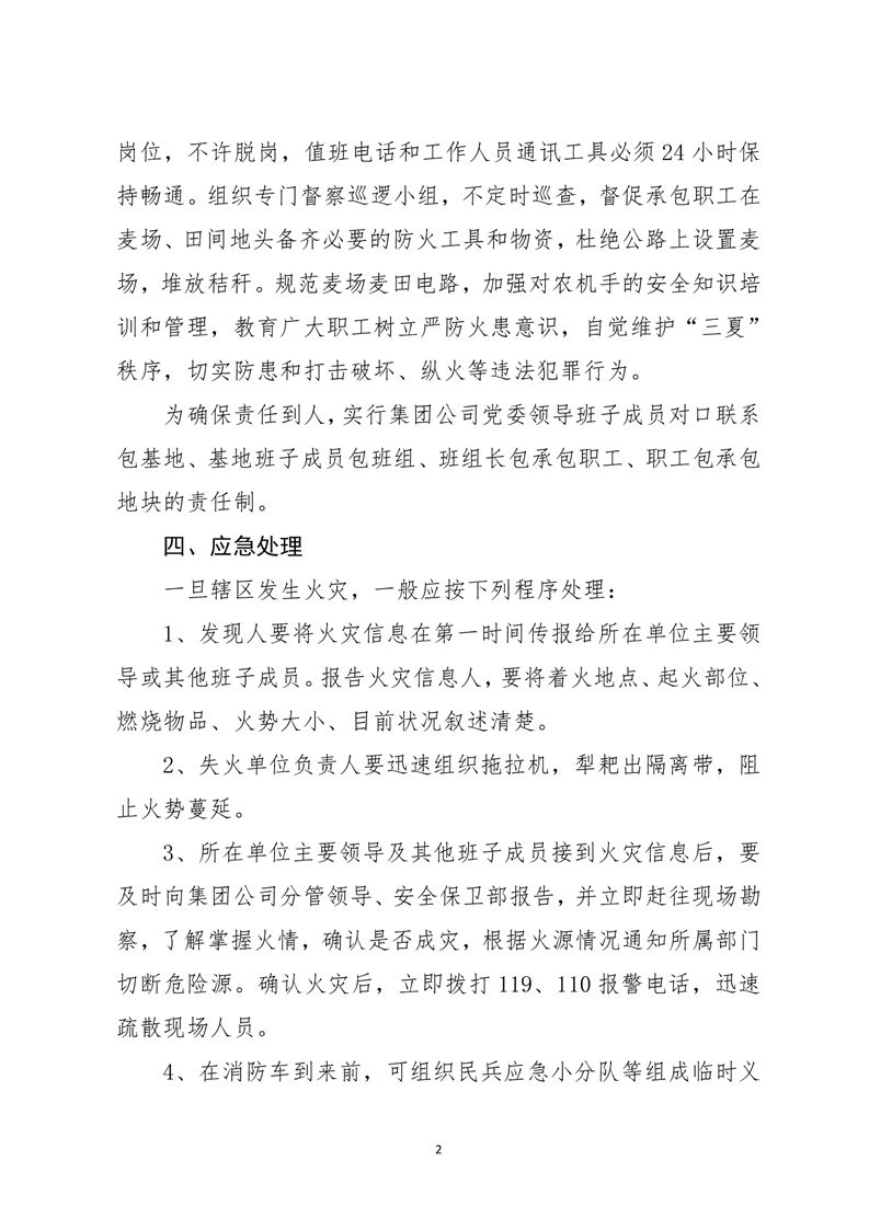 河南兆豐農墾集團有限公司 “三夏”安全防火及秸稈禁燒應急預案