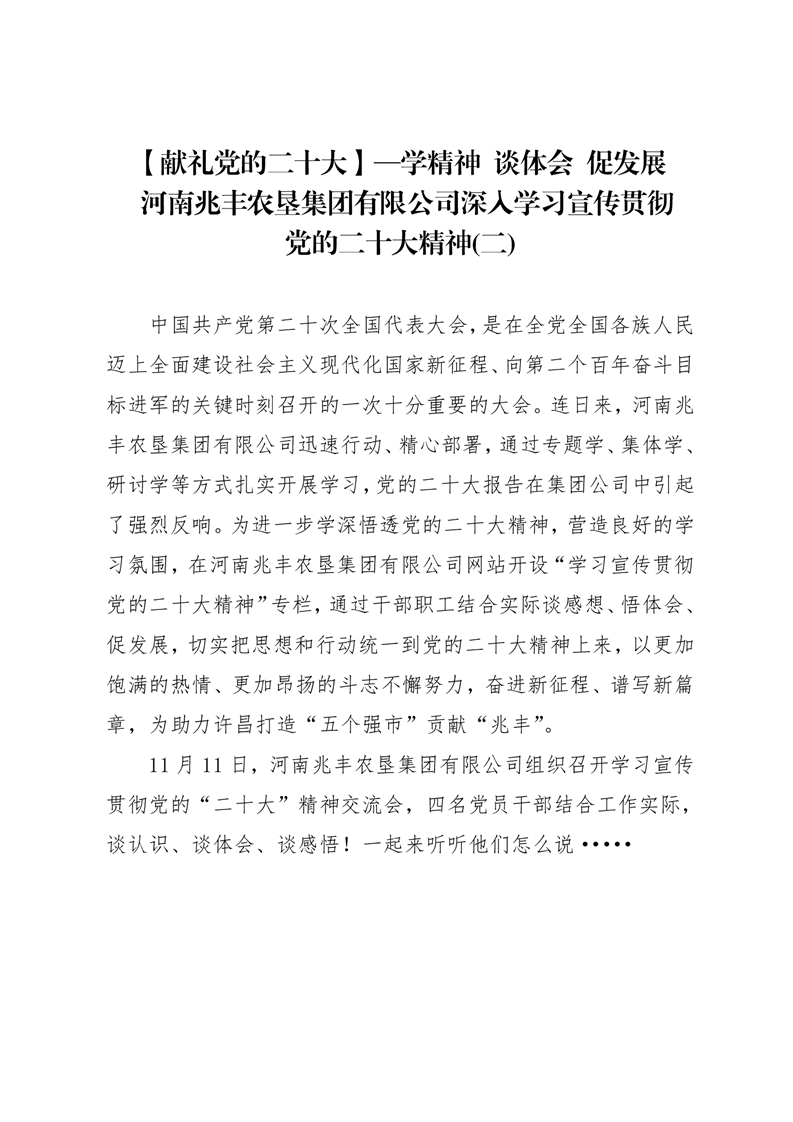 · 【獻禮黨的二十大】—學精神?談體會 促發展? 河南兆豐農墾集團有限公司深入學習宣傳貫徹黨的二十大精神(二)