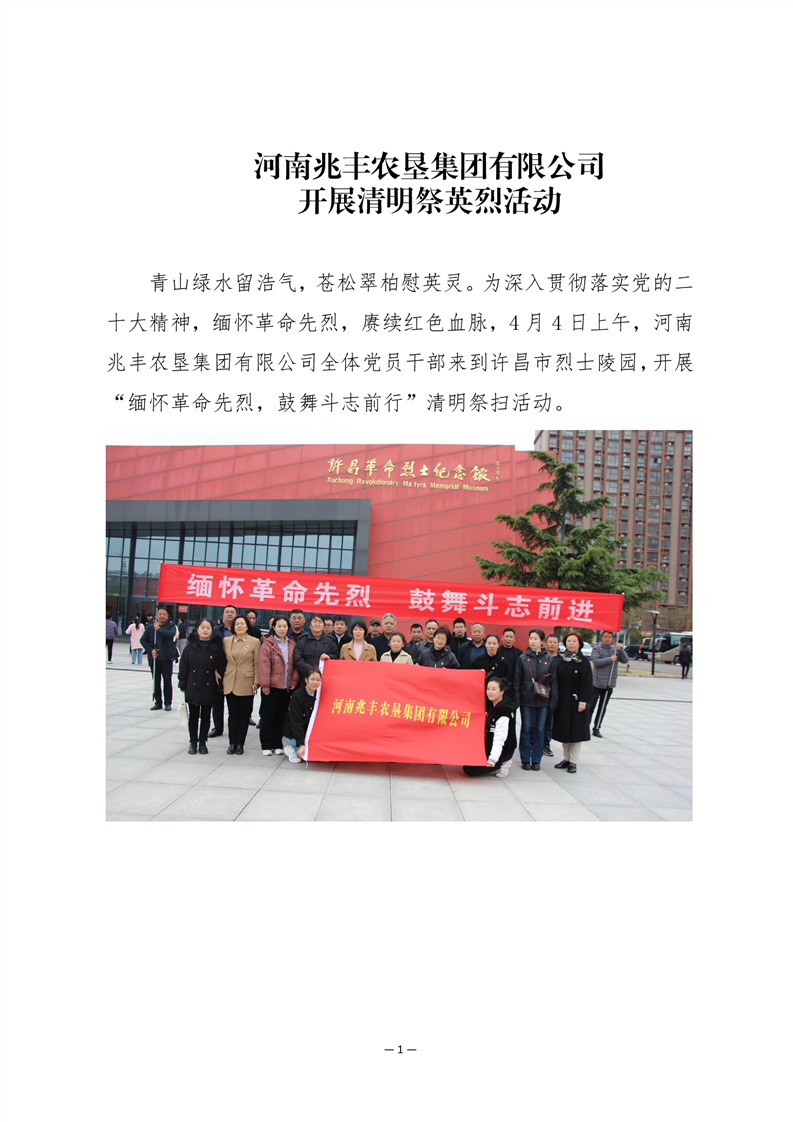 · 河南兆豐農(nóng)墾集團(tuán)有限公司開(kāi)展“清明祭英烈”活動(dòng)