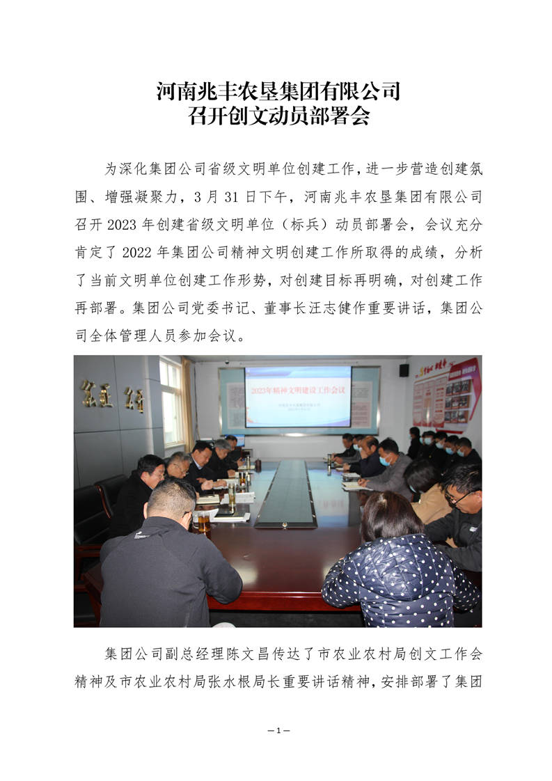 · 河南兆豐農墾集團有限公司組織召開精神文明創建動員部署會
