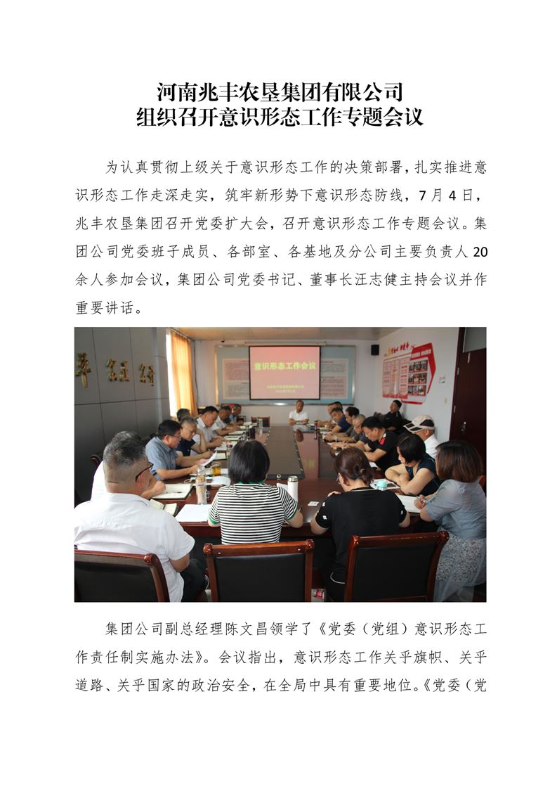 · 河南兆豐農(nóng)墾集團(tuán)有限公司 組織召開(kāi)意識(shí)形態(tài)工作專(zhuān)題會(huì)議