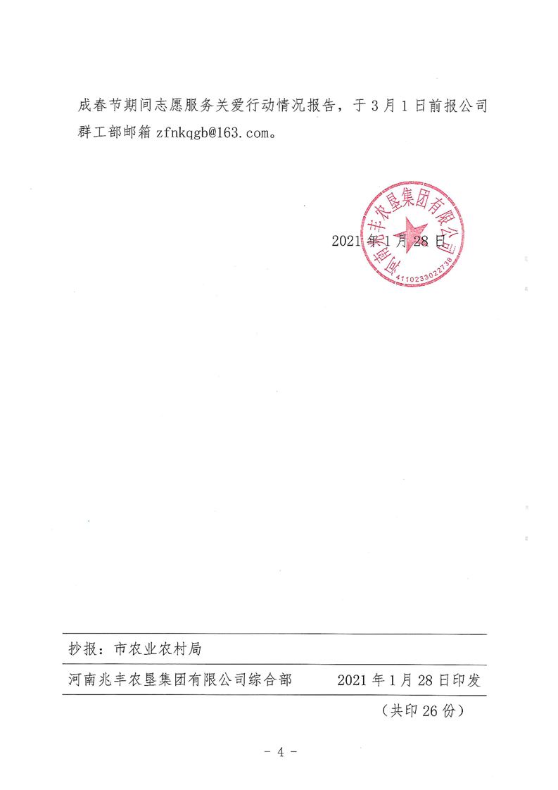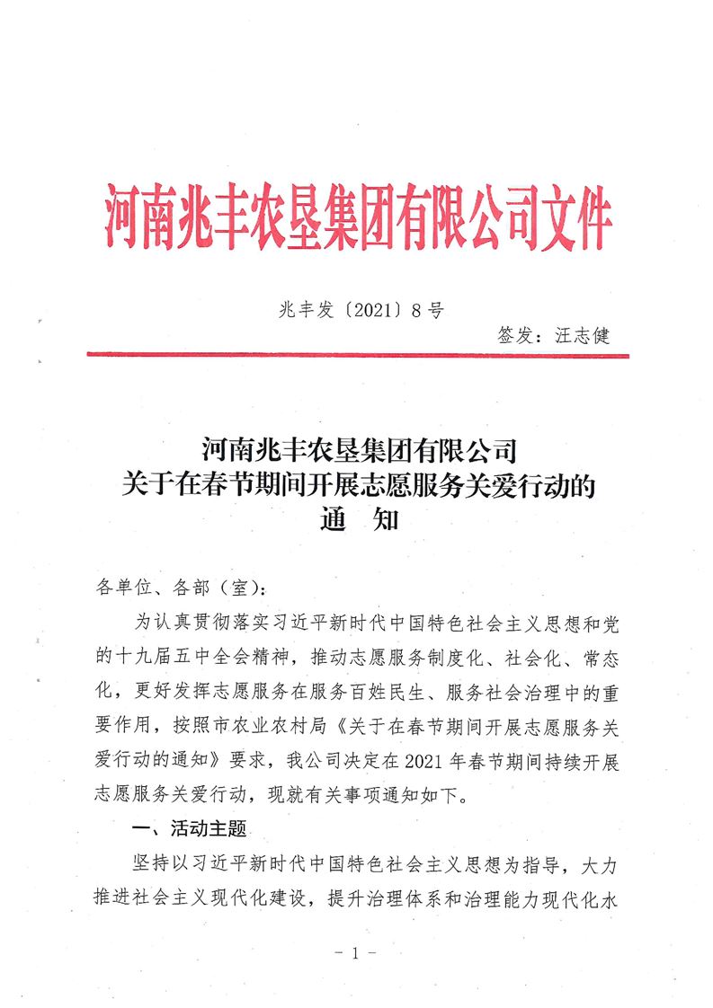 · 河南兆豐農墾集團有限公司 關于在春節期間開展志愿服務關愛行動的通知