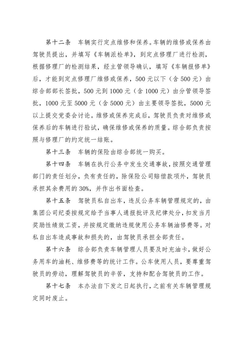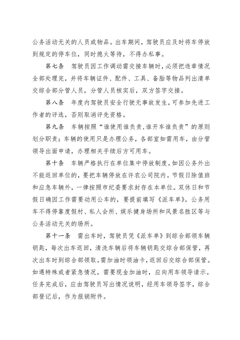 河南兆豐農墾集團有限公司 公務車輛管理規定