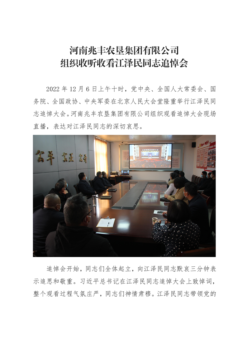 · 河南兆豐農墾集團有限公司 組織收聽收看江澤民同志追悼會