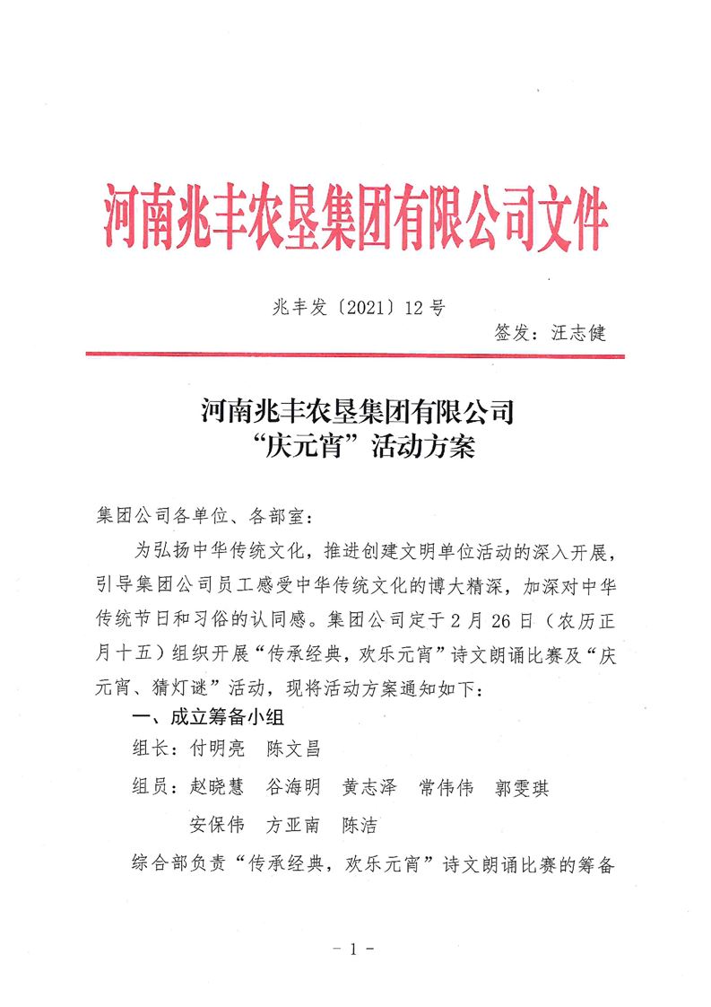· 河南兆豐農墾集團有限公司“慶元宵”活動方案