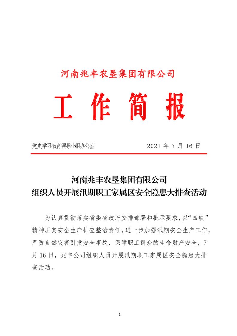 · 【我為職工辦實事】河南兆豐農墾集團有限公司 組織人員開展汛期職工家屬區安全隱患大排查活動