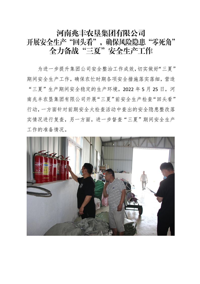 · 河南兆豐農墾集團有限公司 開展安全生產“回頭看”,確保風險隱患“零死角”全力備戰“三夏”安全生產工作