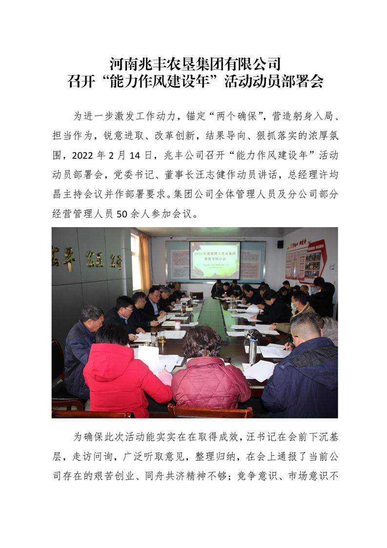 · 河南兆豐農墾集團有限公司 召開“能力作風建設年”活動動員部署會