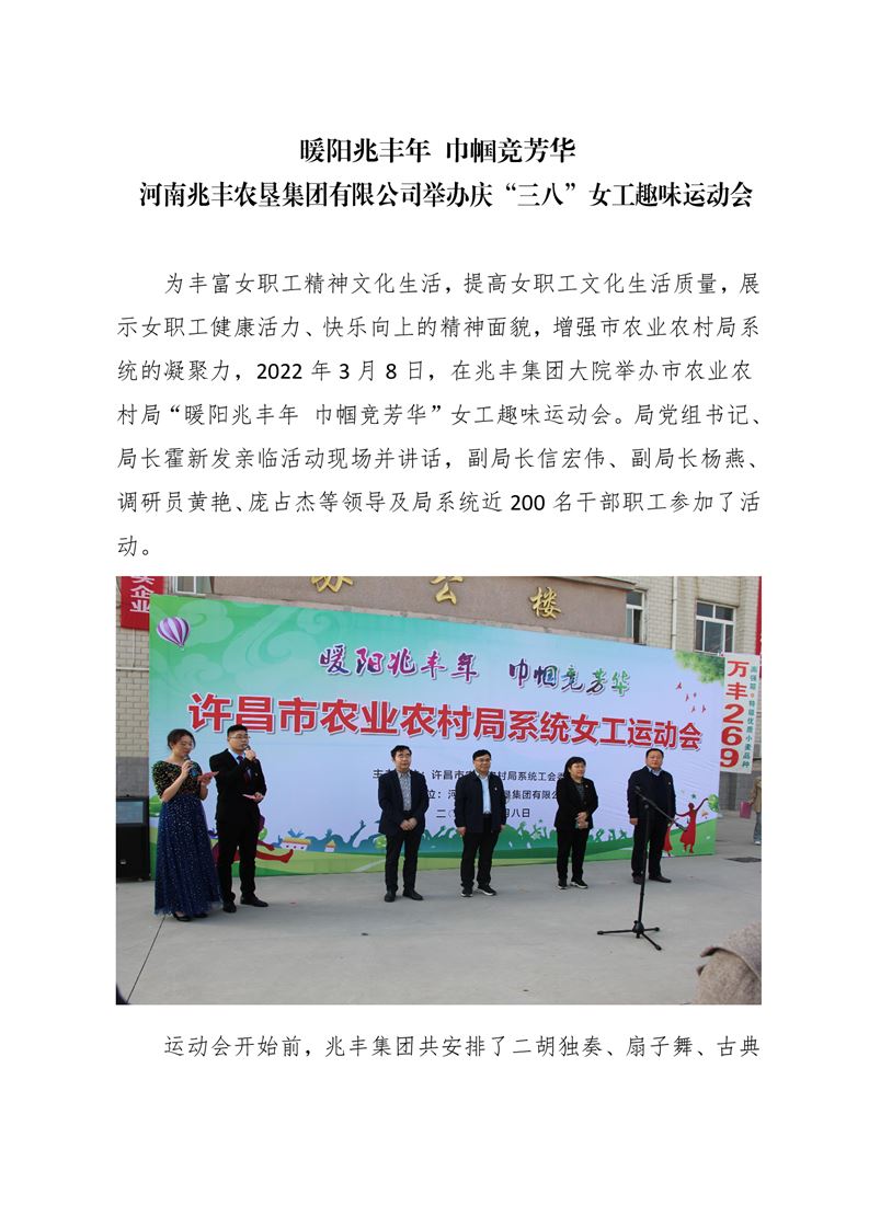 · 暖陽兆豐年 巾幗競芳華 河南兆豐農墾集團有限公司舉辦慶“三八”女工趣味運動會