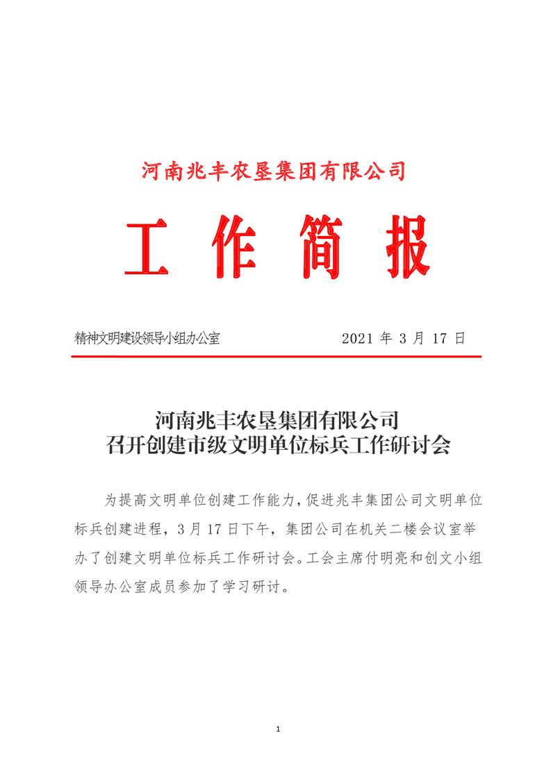 · 河南兆豐農墾集團有限公司 召開創建市級文明單位標兵工作研討會