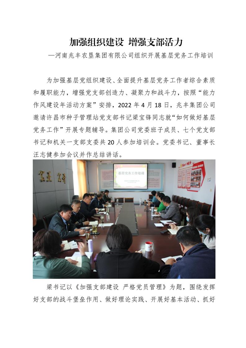 · 加強(qiáng)組織建設(shè) 增強(qiáng)支部活力 —河南兆豐農(nóng)墾集團(tuán)有限公司組織開(kāi)展基層黨務(wù)工作培訓(xùn)