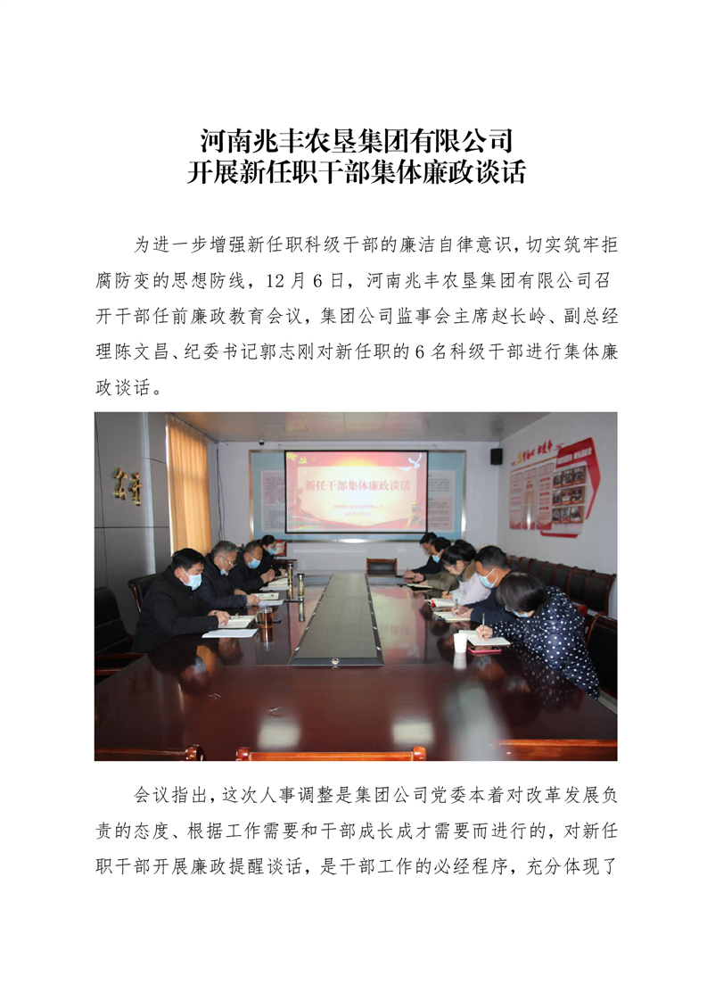 · 河南兆豐農(nóng)墾集團(tuán)有限公司 開展新任職干部集體廉政談話