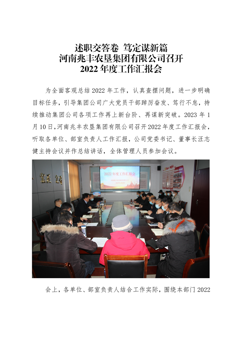 · 述職交答卷 篤定謀新篇 河南兆豐農墾集團有限公司召開 2022年度工作匯報會