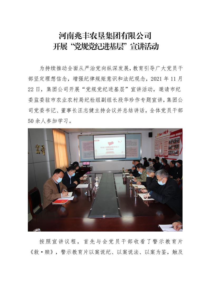 · 河南兆豐農墾集團有限公司 開展“黨規黨紀進基層”宣講活動