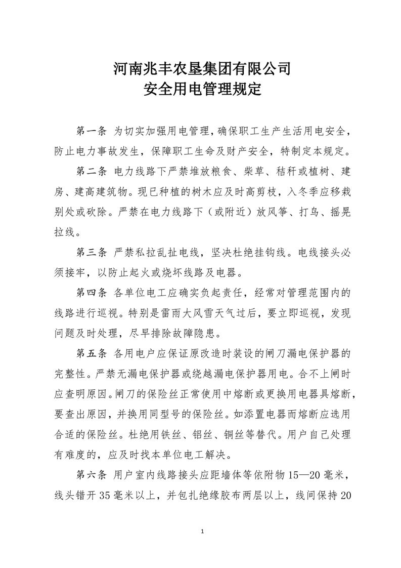 河南兆豐農墾集團有限公司 安全用電管理規定
