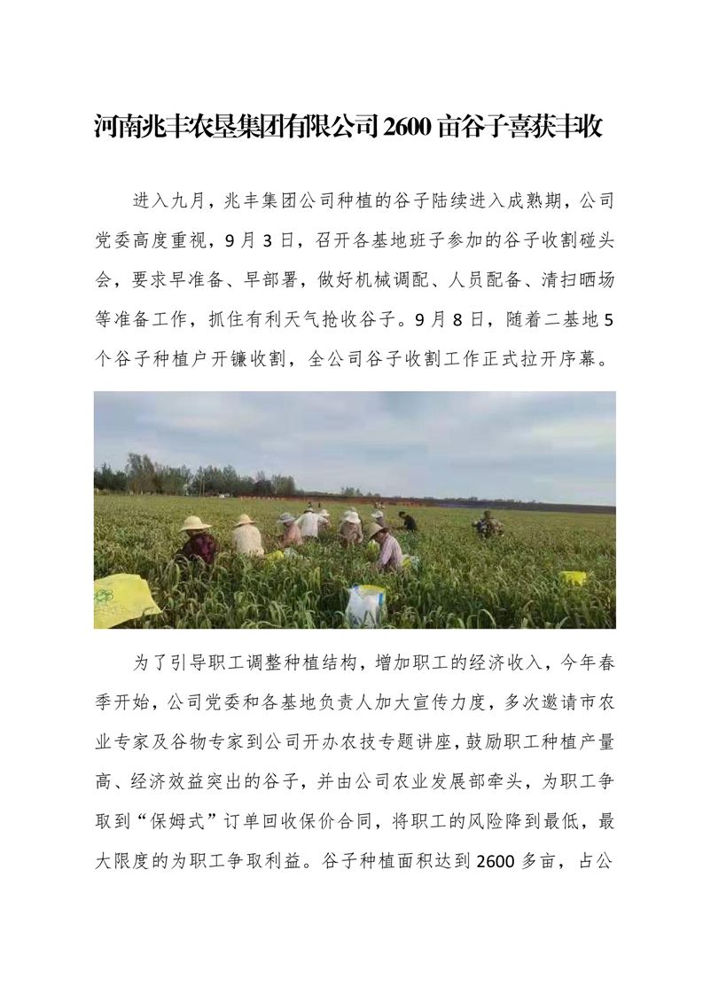 · 河南兆豐農墾集團有限公司 2600畝谷子喜獲豐收