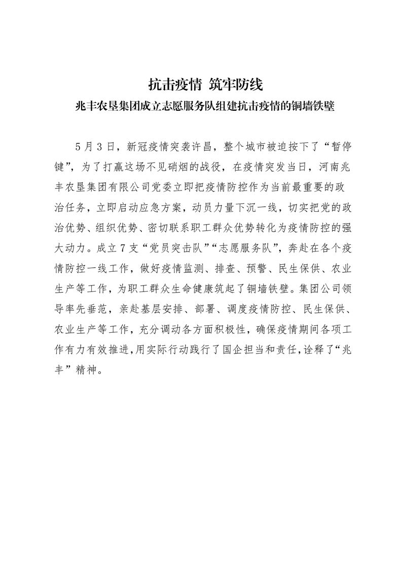· 抗擊疫情 筑牢防線 兆豐農墾集團成立志愿服務隊組建抗擊疫情的銅墻鐵壁