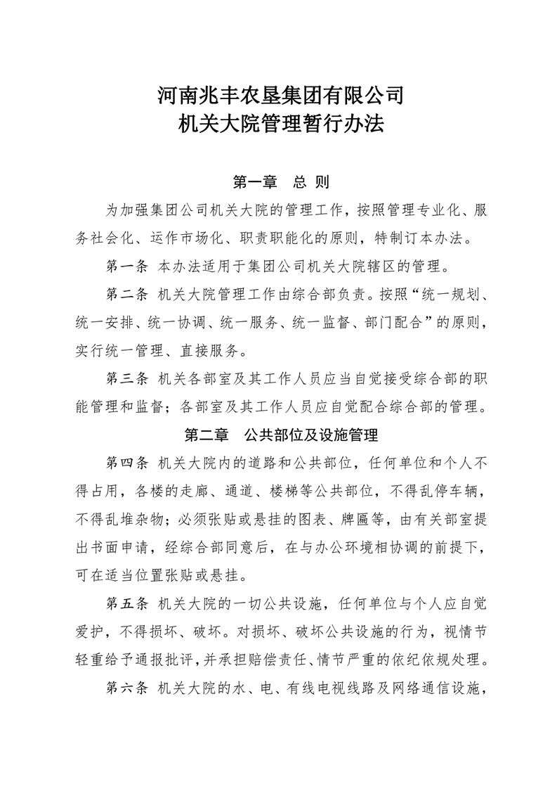 河南兆豐農(nóng)墾集團(tuán)有限公司 機(jī)關(guān)大院管理暫行辦法