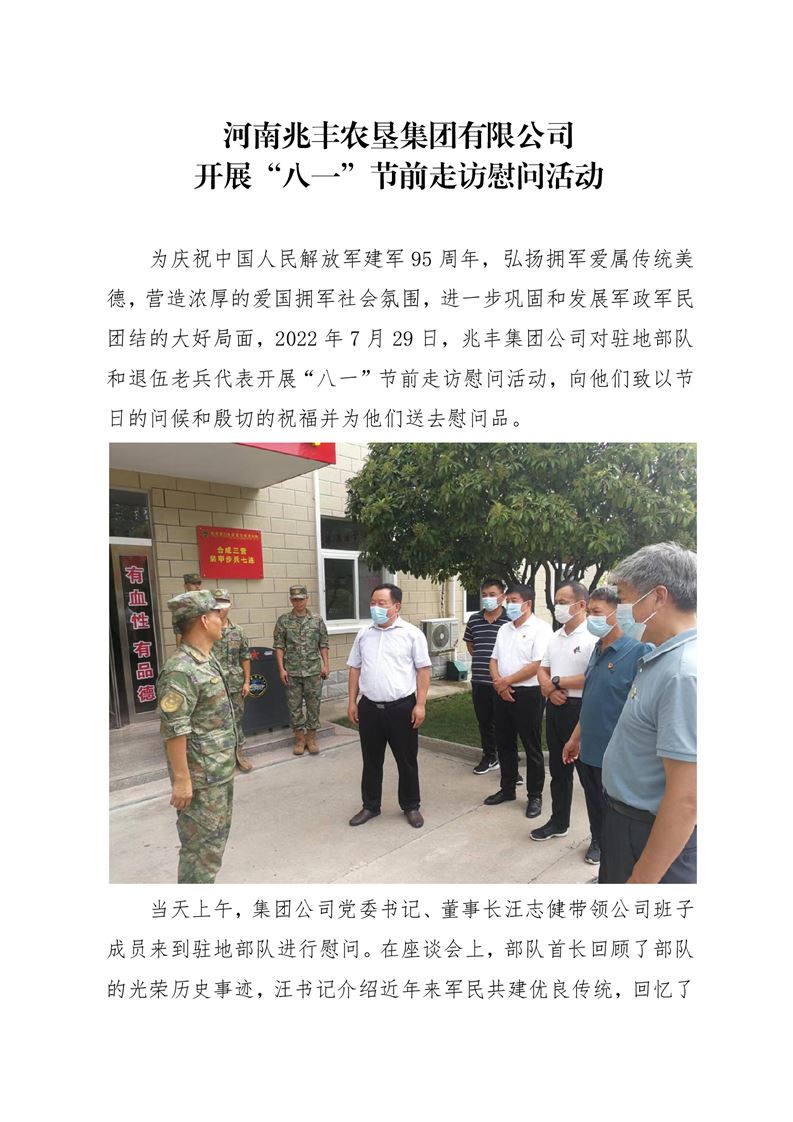 · 河南兆豐農墾集團有限公司 開展“八一”節前走訪慰問活動