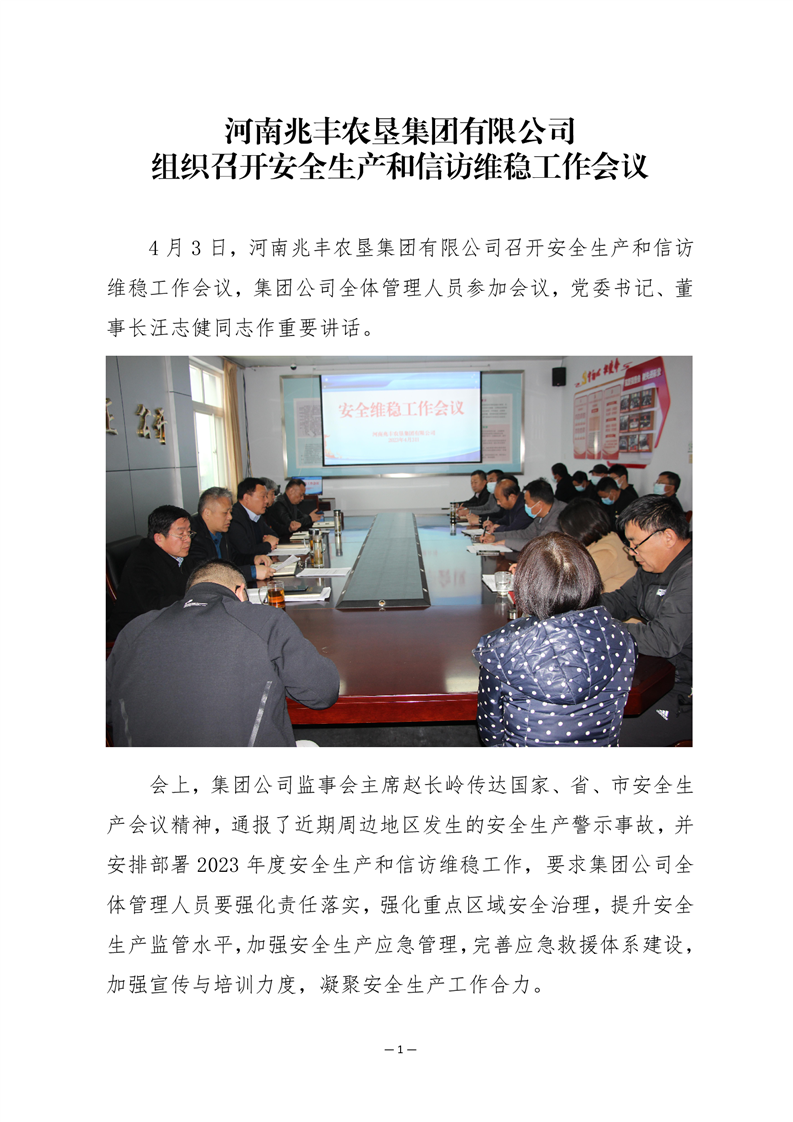 · 河南兆豐農(nóng)墾集團(tuán)有限公司組織召開安全生產(chǎn)維穩(wěn)動(dòng)員部署會(huì)