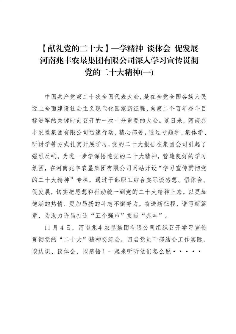 · 【獻禮黨的二十大】—學精神?談體會 促發展? 河南兆豐農墾集團有限公司深入學習宣傳貫徹黨的二十大精神(一)